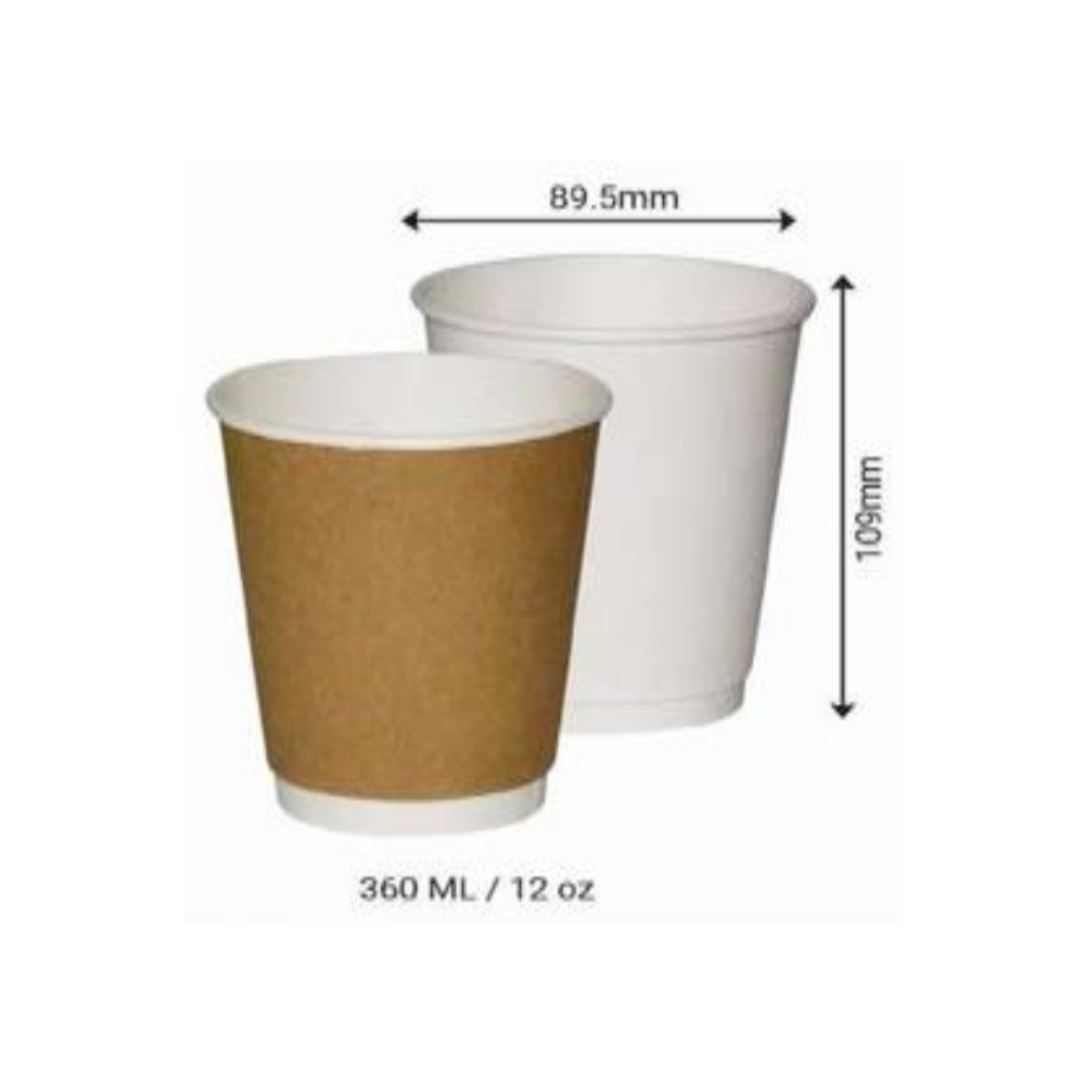 12 OZ – DOUBLE WALL PAPER CUPS – KRAFT: 90 mm x 60 mm x 109 mm